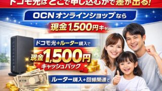 ドコモ光を一番お得に申し込むならOCNオンラインショップ。ルーター購入+回線開通で1,500円現金還元。実体験と比較で徹底解説。