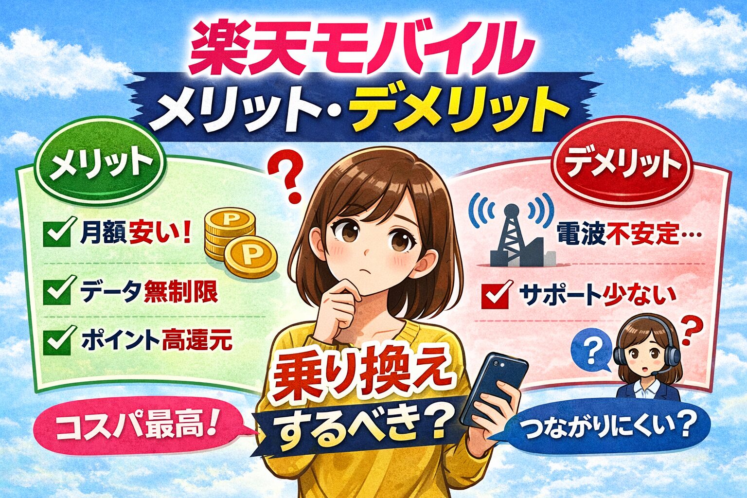 「安くしたい。でも楽天は電波が不安…」と迷っていました。